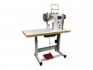 Одноигольная колонковая машина челночного стежка с верхней и нижней роликовой подачей и игольным продвижением, увеличенным челноком, прямым приводом и позиционером иглы, автоматической обрезкой нити, закрепкой нити, автоматическим подъемом ролика, дизайнерскими строчками.