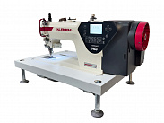 Настольная одноигольная прямострочная машина с двойной подачей материала (шагающая лапка), электронной регулировкой длины стежка, прямым приводом, увеличенным челноком. Оснащена автоматической обрезкой и закрепкой нити, автоматическим подъемом лапки, соленоидом зажима верхней нити и функциями программирования количества стежков, дизайнерские строчки. Комплектуется компактным столом.