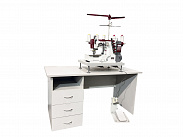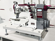 Настольная плоскошовная высокоскоростная машина цепного стежка с верхним раскладчиком нити, с плоской платформой, автоматическим подъемом лапки, позиционером иглы, со встроенным сервоприводом и удобной панелью управления.