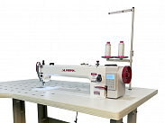 Швейная машина с увеличенной платформой и шагающей лапкой, с автоматической обрезкой нити, закрепкой нити и автоматическим подъемом лапки. Вылет рукава 560 мм. Длина стежка до 10 мм.