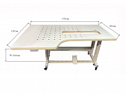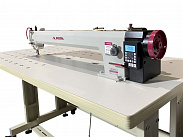 Швейная машина с увеличенной платформой и шагающей лапкой, с автоматической обрезкой нити, закрепкой нити и автоматическим подъемом лапки. Вылет рукава 850 мм. Длина стежка до 10 мм.
