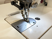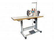 Одноигольная прямострочная машина с двойным продвижением (шагающая лапка), увеличенным челноком, прямым приводом, соленоидом зажима верхней нити, автоматической обрезкой нити, закрепкой и подъем лапки.